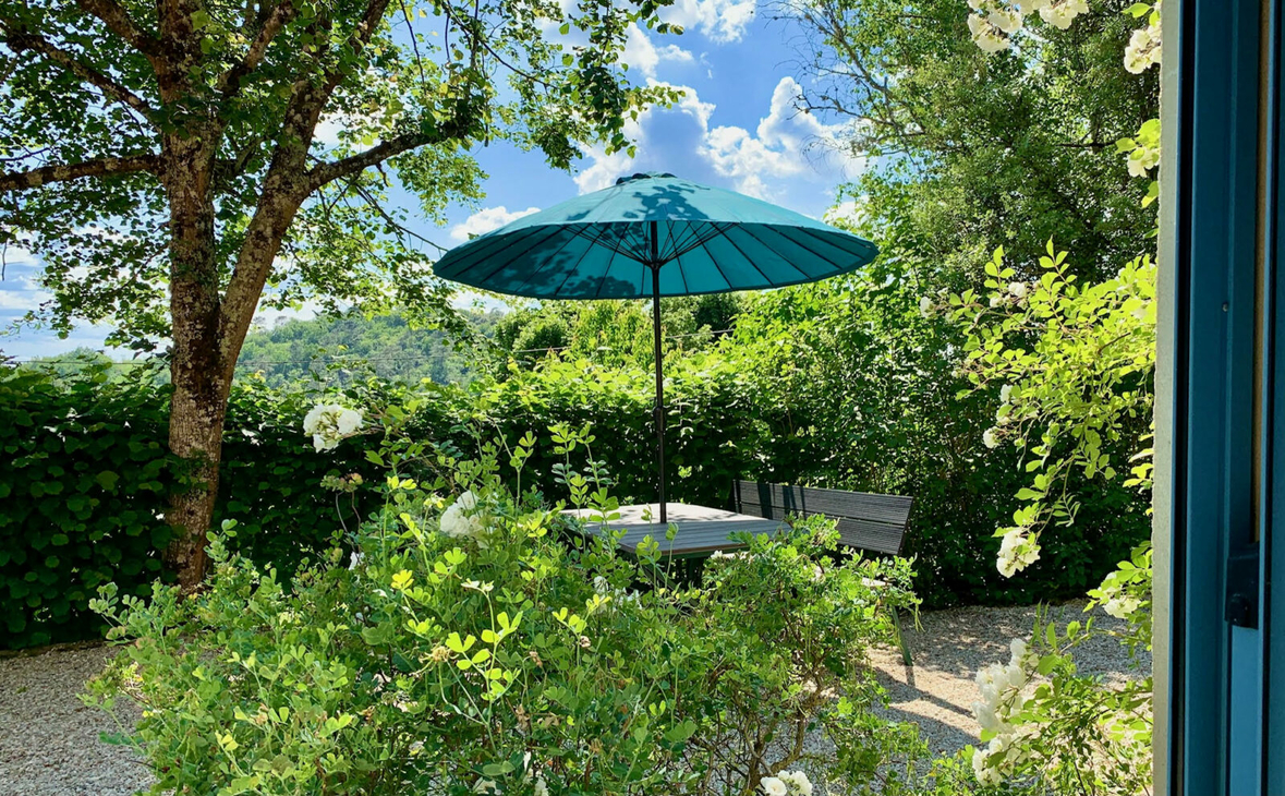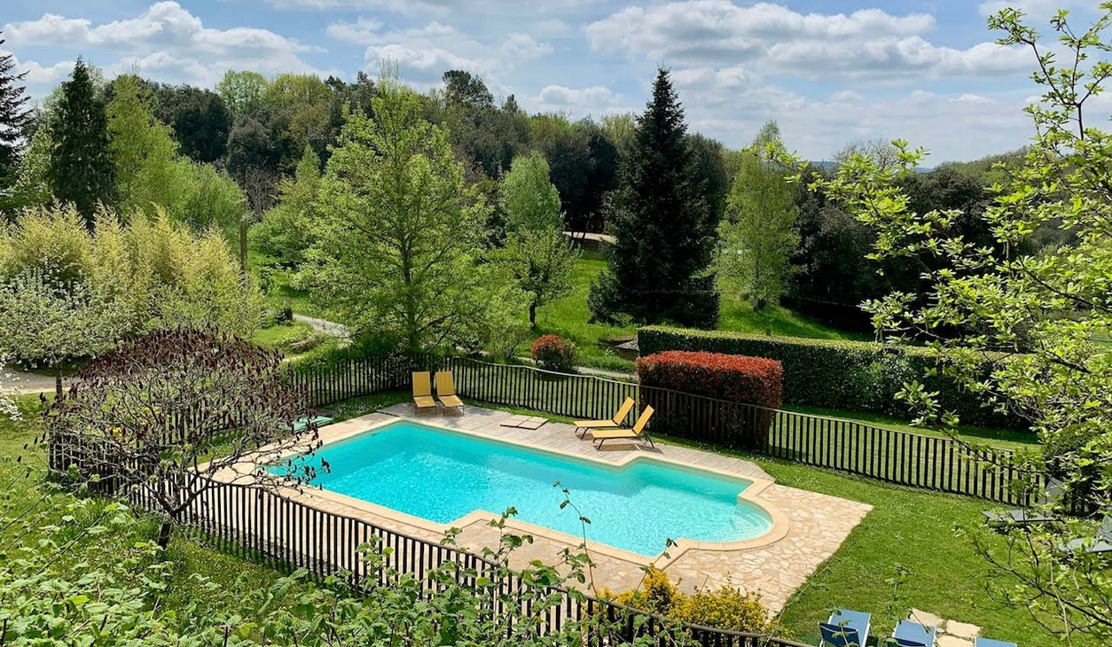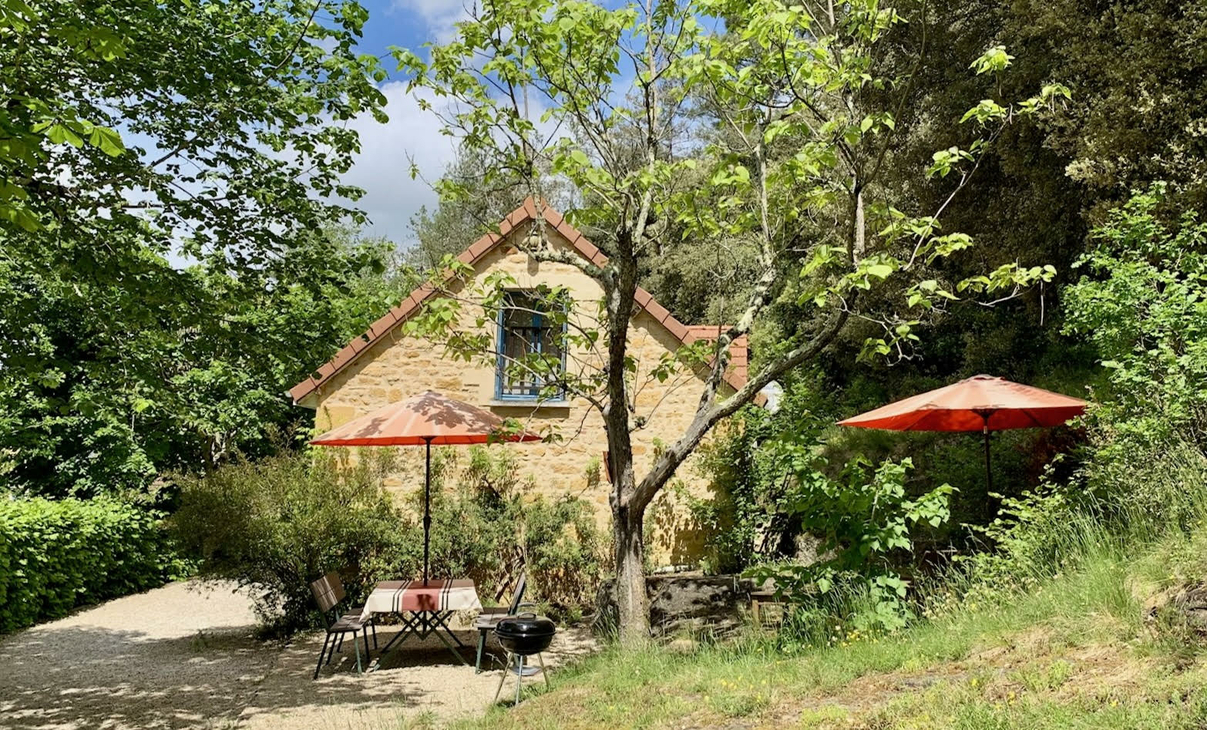 Trois gîtes de charme avec terrasse dans un domaine boisé au bord de la piscine,